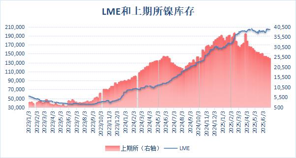 上期所公布的數據顯示,6月27日當周,滬鎳庫存繼續下滑,周度庫存減少2.32%至24,718噸,降至九個月新低。