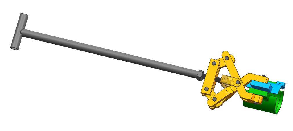 針對(duì)問題點(diǎn),一款小巧實(shí)用的落輥工具的圖紙?jiān)谥x俊君的努力下應(yīng)運(yùn)而出,工具在設(shè)計(jì)時(shí)充分考慮小巧輕便、夾持力強(qiáng)、快速夾緊松開、在拖拽過程中能將部分拉力轉(zhuǎn)化為夾持力等因素。經(jīng)努力攻關(guān),手持式抓輥器于2023年2月投入使用,使落輥處理提升了10分鐘以上,勞動(dòng)強(qiáng)度降低,安全性提升。經(jīng)申請(qǐng),該小工具獲國家實(shí)用新型專利。